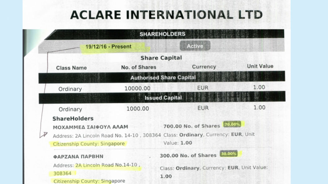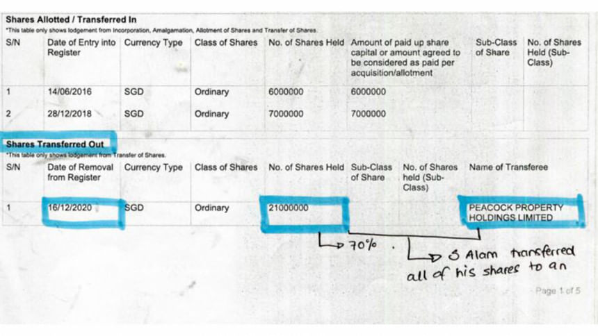 This newspaper is in possession of documents that reveal parts of the web of the offshore business Alam has built with his wife Farzana Parveen. Our investigation has tracked down investments linked to Alam and his wife in Singapore, British Virgin Islands and Cyprus.
