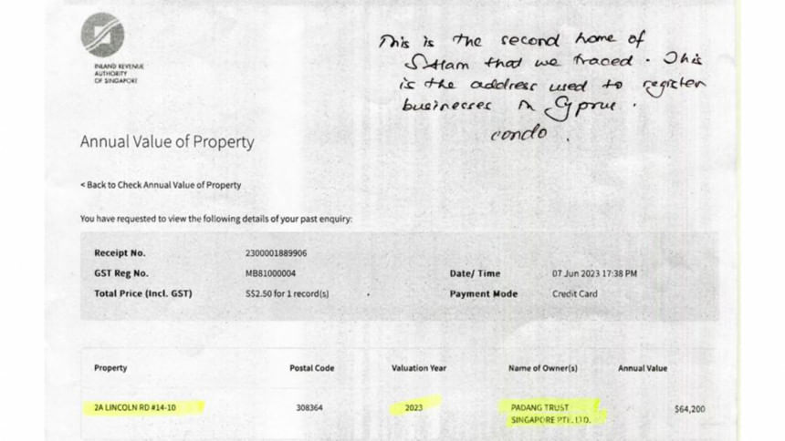 Records obtained from the Inland Revenue Authority of Singapore show that Alam and his wife owned a 12,260 square feet residential property in Novena, central Singapore, until 2021.