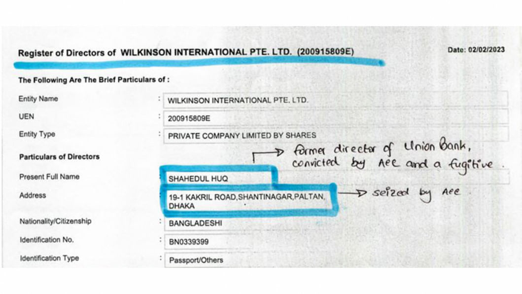 Alam nominated Ong Lay Kim, a Singaporean national with no discernible online presence that The Daily Star could find as the sole director of Wilkinson after he removed his name from the Singaporean company.