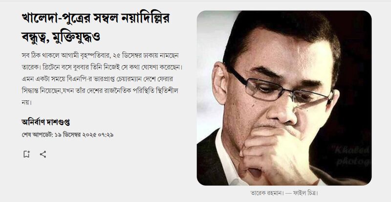 However, on November 15, 2025, the newspaper published a report titled “Khaleda’s Son’s Capital: New Delhi’s Friendship, Even the Liberation War.”